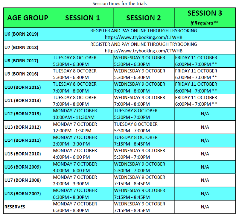 PLEASE READ BEFORE BOOKING: Trial sessions are run over 2 sessions unless otherwise advised. Players will need to attend BOTH sessions unless otherwise advised.