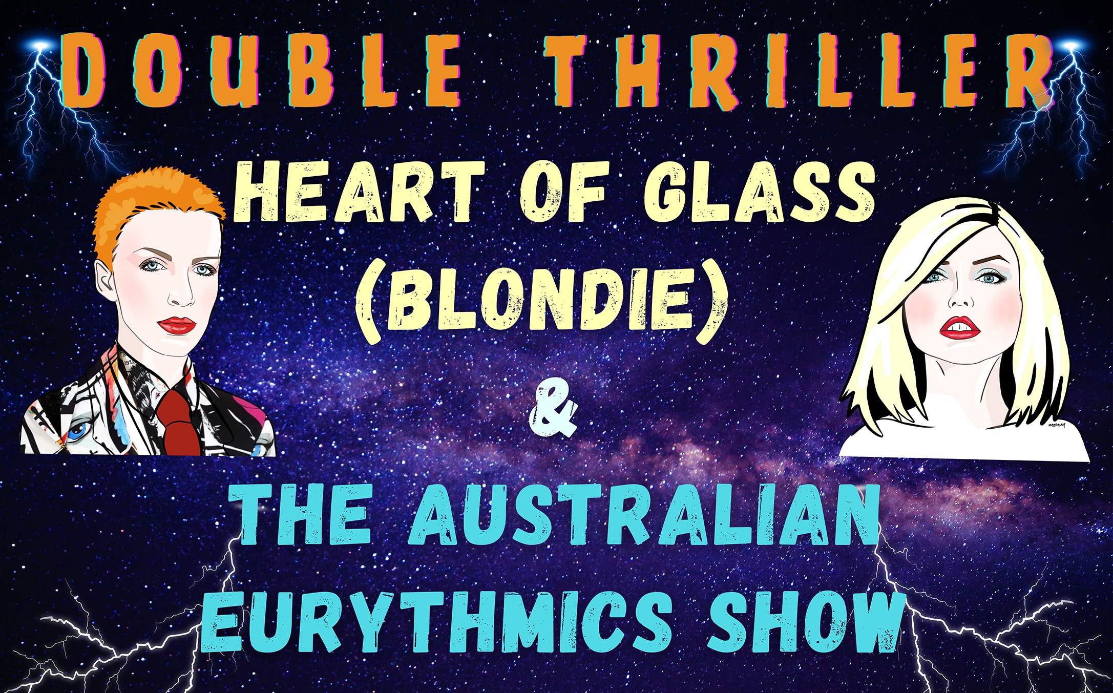 The Australian Eurythmics Show & Heart Of Glass (Blondie) A DOUBLE BILLER!This show will take you on a ride through the 70's & 80's when both New Wave & Electronic Music hit the airwaves with songs that will live with us forever! Come join us and relive these unforgettable global hit songs performed by an outstanding cast of the Best in the West!