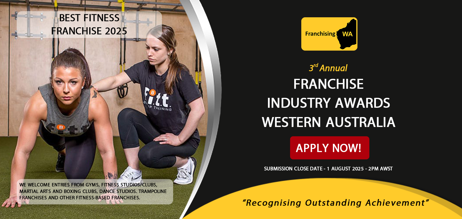 Submission Closing Date – Friday 1st August 2025 – 2pm AWST.Best Fitness Franchise 2025