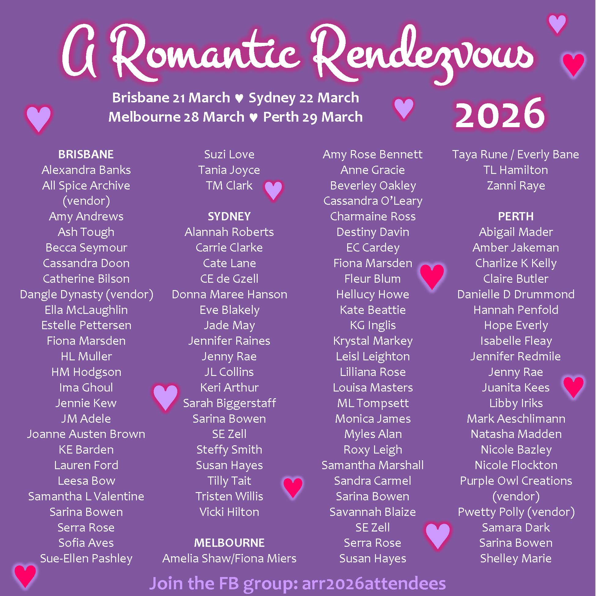 Once you have booked, please join us in the Facebook group. The full list of signing authors is shown at the bottom of this screen.Event dates and locations