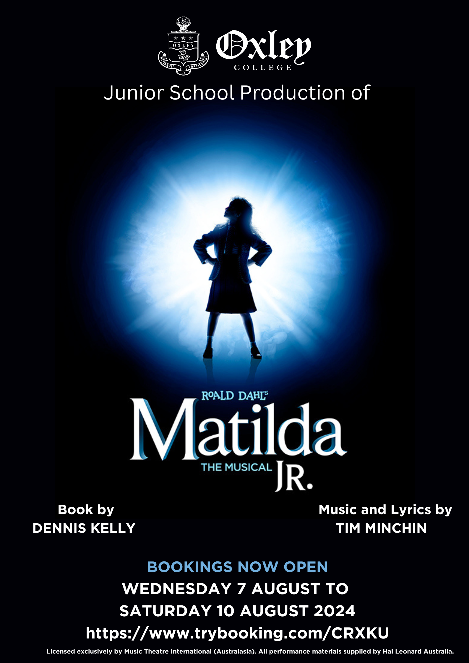 Our talented Junior School students are performing in Matilda JR. Come join us in song and dance as we laugh with Matilda, learn with Miss Honey and hide from the terrible Trunchbull! This spectacular production brought to you by Oxley College this August!Wednesday 7 August & Friday 9 August