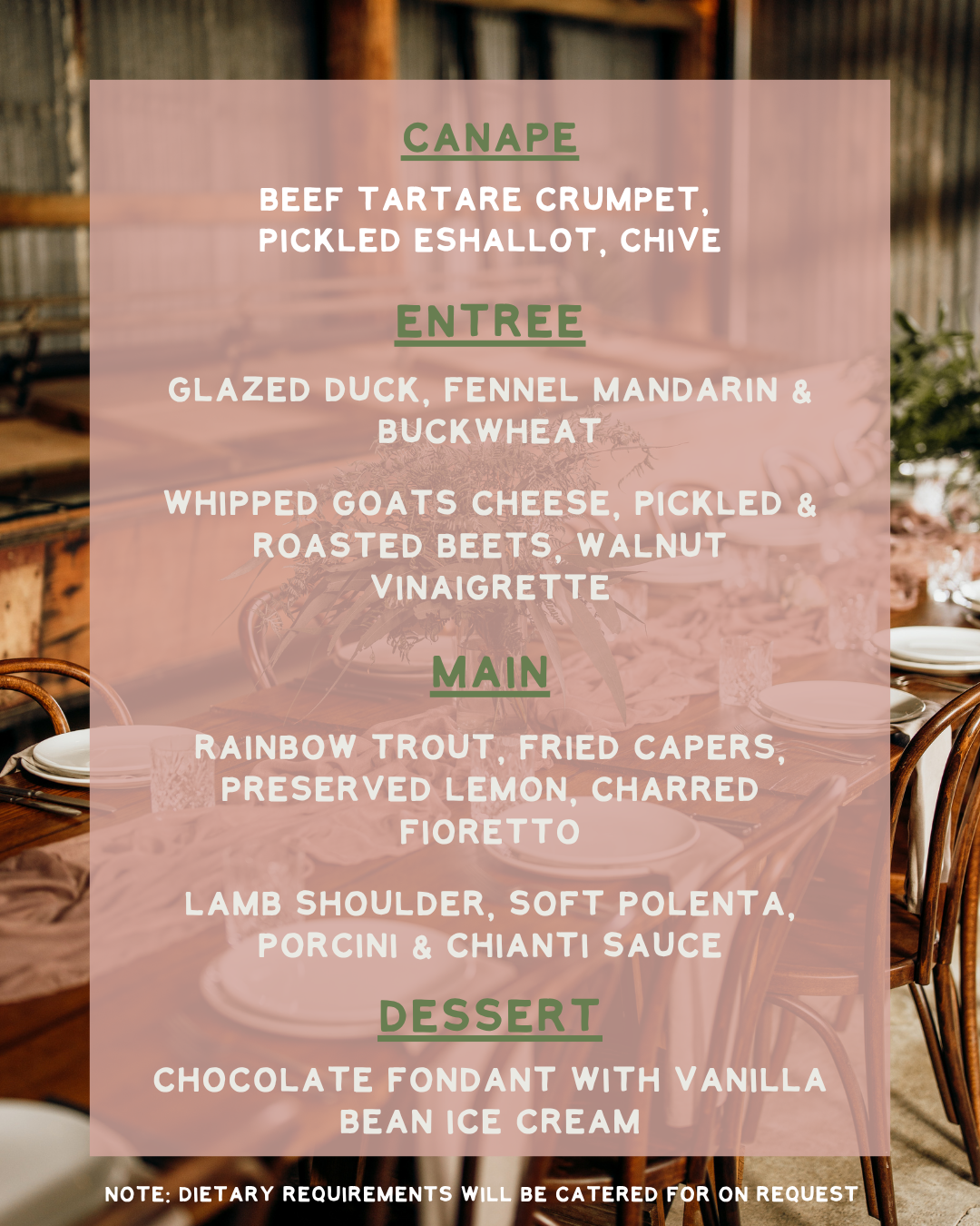– Three-course set share platter menu