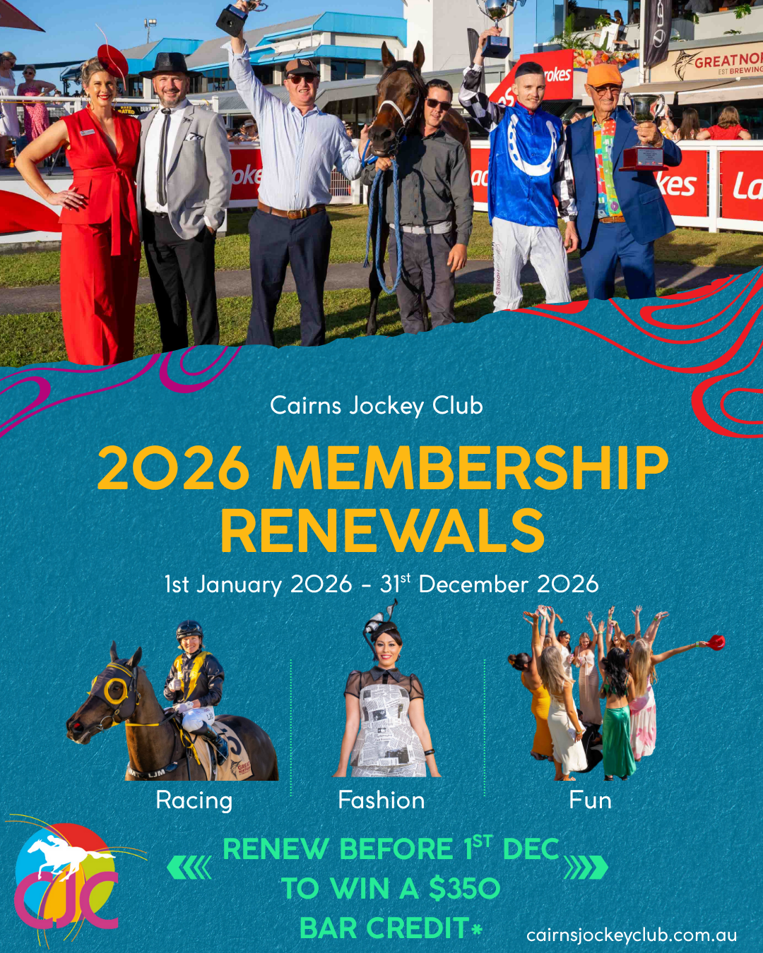 Membership cards provide gate entry and access to both CJC Members Bars at all race meetings, including: