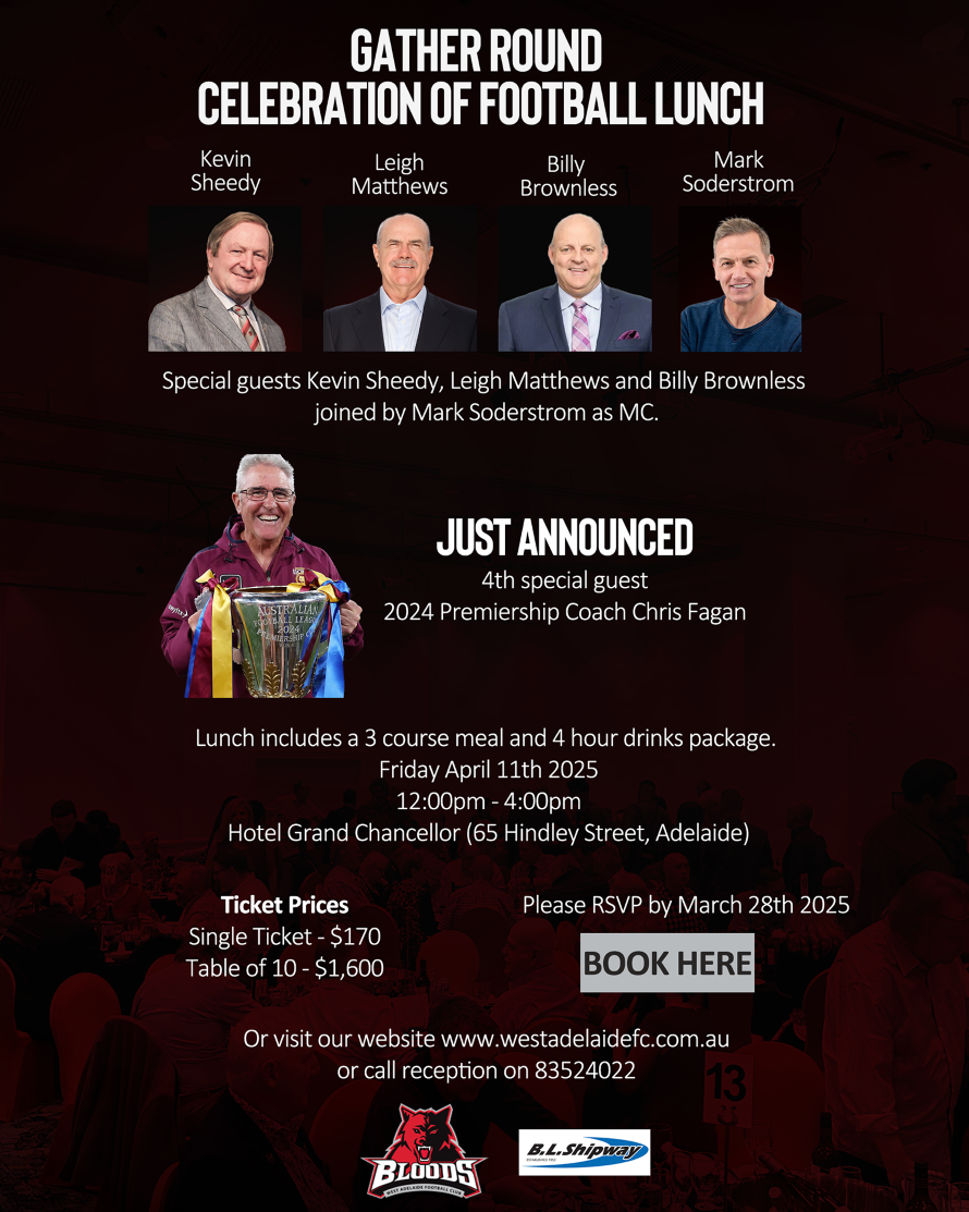 Special guests: Kevin Sheedy, Leigh Mathews, Billy Brownless and Chris Fagan.