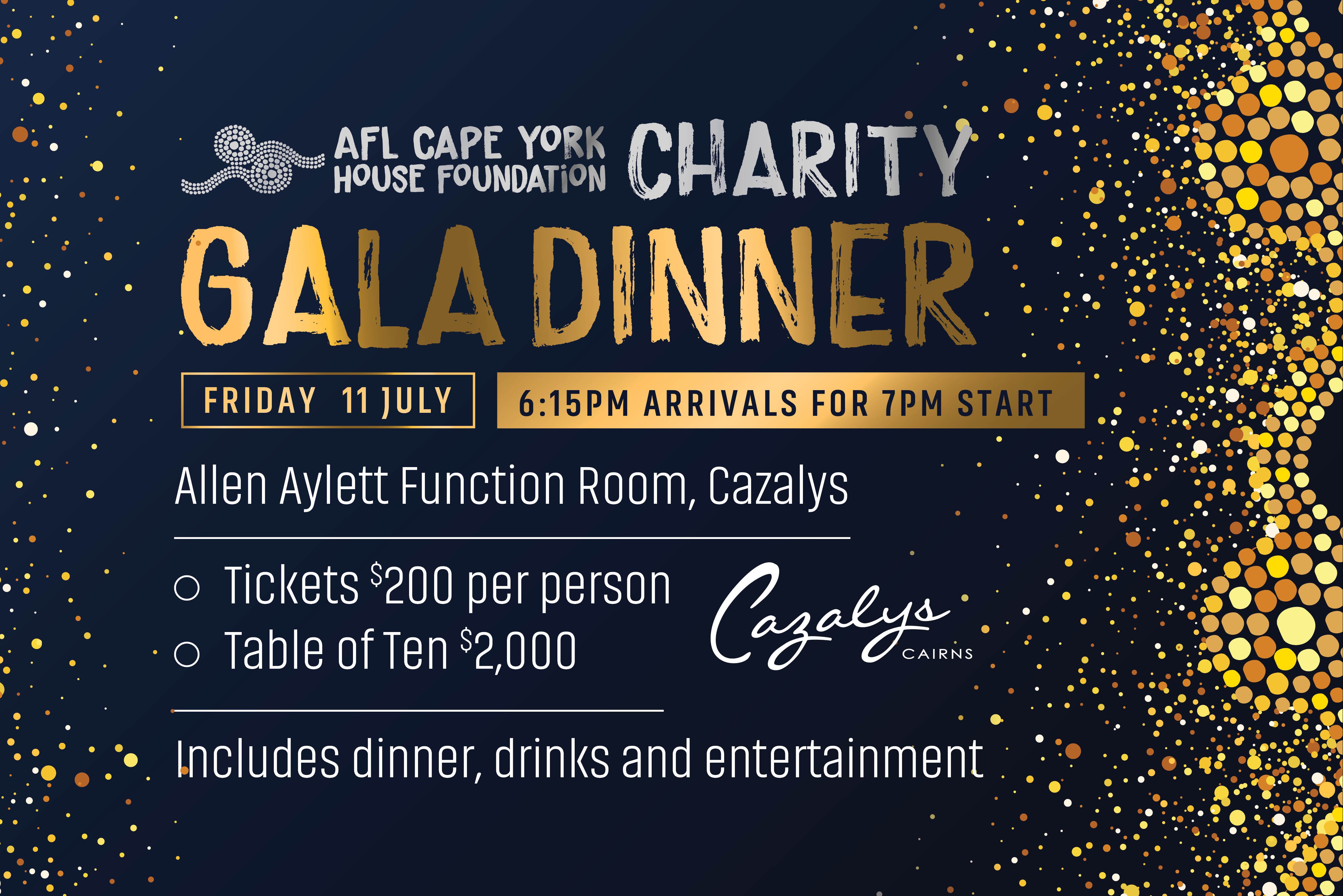 Join us for a spectacular evening in support of AFL Cape York House Foundation. Your ticket includes meal, drinks package, and top-tier live entertainment, all in the spirit of raising vital funds for our programs. Hear from special guest speaker AFL CEO Andrew Dillon. With a live Auction, raffles, and plenty of opportunities to contribute, it's a night of generosity, celebration, and community impact.Our Auction & Raffles on the night will feature incredible prizes including a Toyota Prado GXL, luxury holiday and an AFL Grand Final package! Don't miss out!