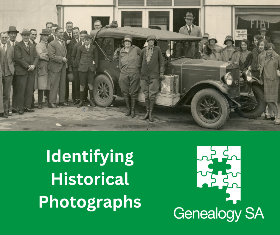 This month for Wednesdays @ 1, learn how to investigate historical photographs with Genealogy SA Photographic Volunteer Alison Hicks.