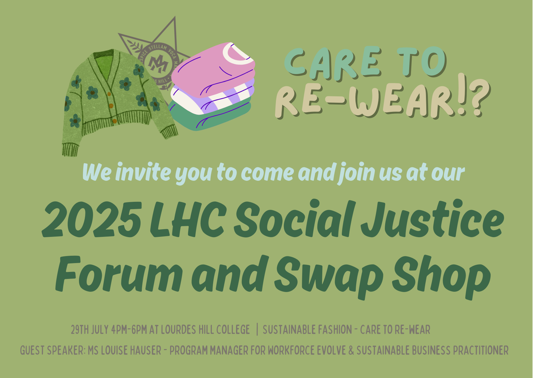 Join students from other Catholic and Independent Secondary Schools for an open discussion about ‘Sustainable Fashion - Care to Re-wear.’ We want to extend an extra special invitation all schools, single-sex male and female as well as co-educational. We hope we can all walk together on this journey towards a more sustainable future.