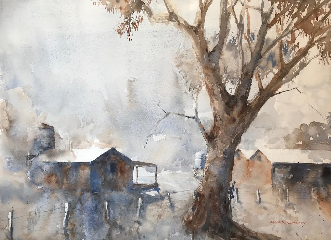 Time permitting, Ray will demonstrate painting of gum trees and farm buildings, then the class will paint their own version.