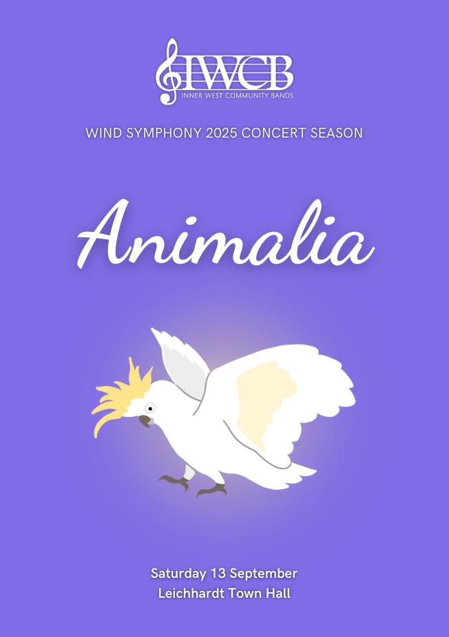 Join us for this lively concert program of music inspired by the world of animals both familiar and mythical. From the anguished Cry of the Last Unicorn to a startling arachnid encounter with a Huntsman in the Car; the rugged landscapes of The Catskills in Appalachia and the high country immortalised in The Man from Snowy River; to jazz cats, baby elephants and Eric Whitacre's restless Equus, and music from ‘Sing’ and ‘The Lion King’, this program celebrates the animal kingdom. 🐾 Presented by the IWCB Wind Symphony (IWCB's Tuesday night ensemble)