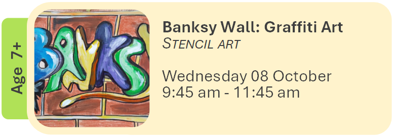 Step into the rebellious, creative world of Banksy! Learn how to create your very own graffiti-style masterpiece. A fun mix of bold art, street style, and self-expression—no spray cans required!