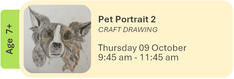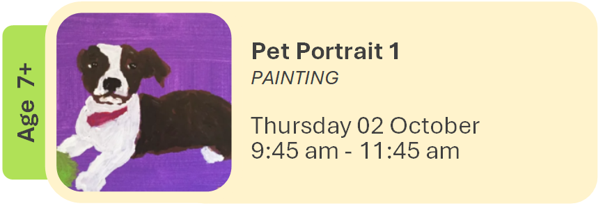 Participants must bring an A4 size photo reference of their pet. Art can be messy, please don't wear your best clothes. All materials supplied.