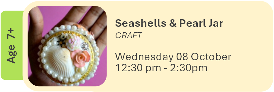 In this playful and expressive class, kids will be provided with pearls beads and seashells to decorate jars.