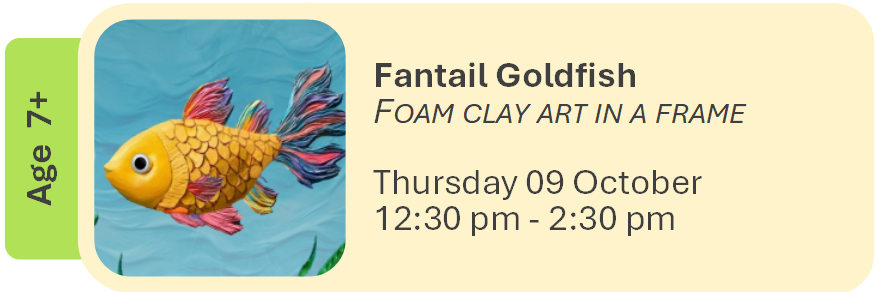 Dive into a colorful underwater world and art! Kids will bring their imaginations by creating Foam Clay Fantail Fish Artwork in a Frame.