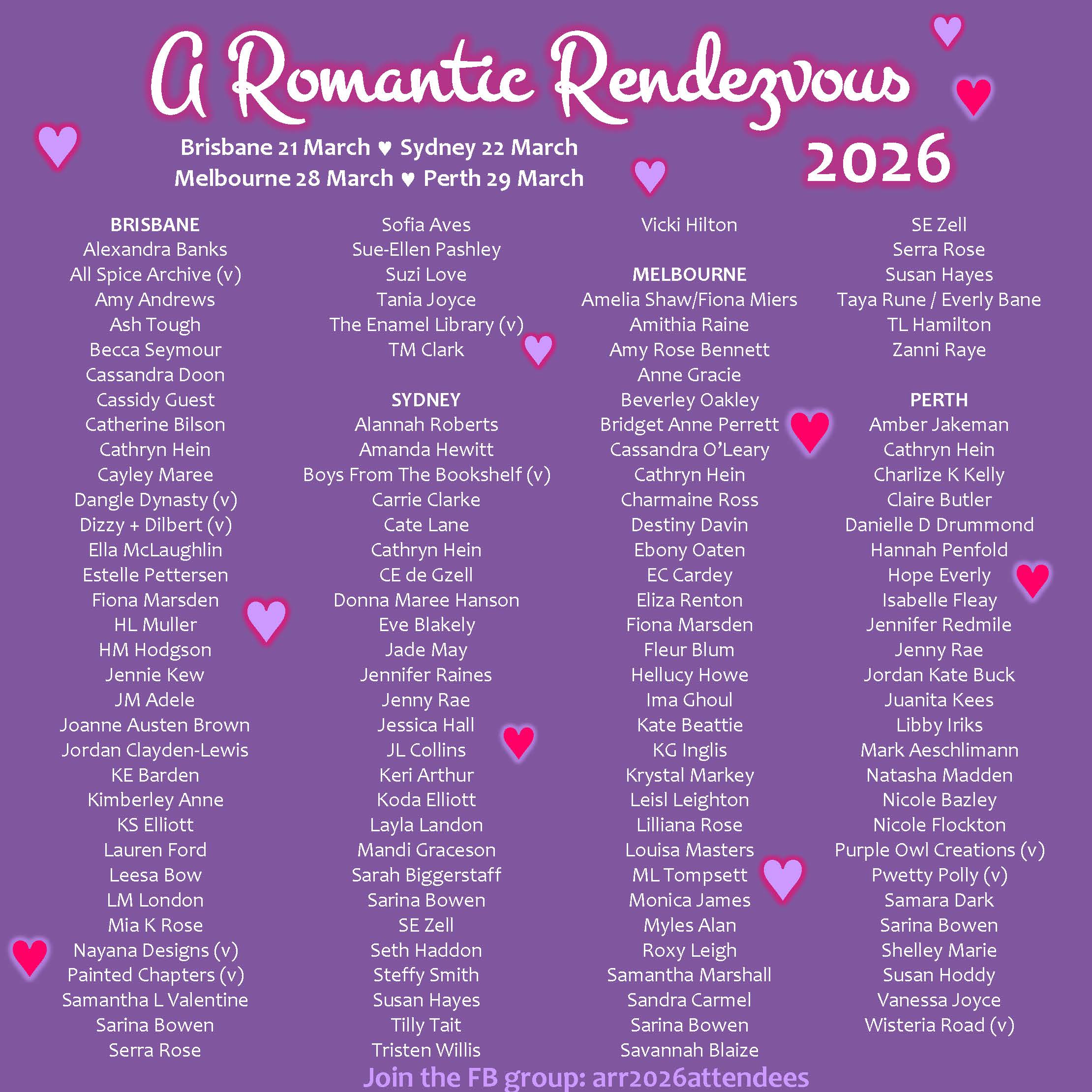 Once you have booked, please join us in the Facebook group. The full list of signing authors is shown at the bottom of this screen.Event dates and locations
