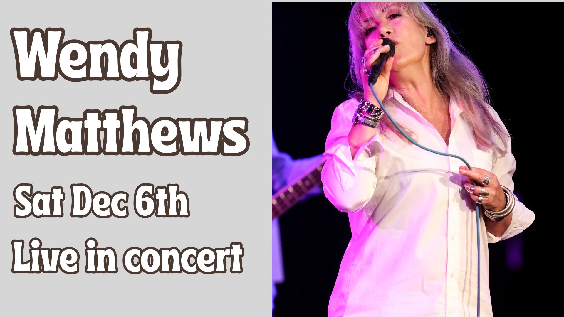 This very special event will feature Wendy and her band of first class touring and session players performing all the hits. Born in Montreal Canada, Wendy came to Australia in 1982, was an in demand session singer, played with several Australian bands before branching out into a solo career that spawned hit records, chart topping, Platinum albums and singles. For over 40 years, she has become one of the most in demand vocalists of our time.