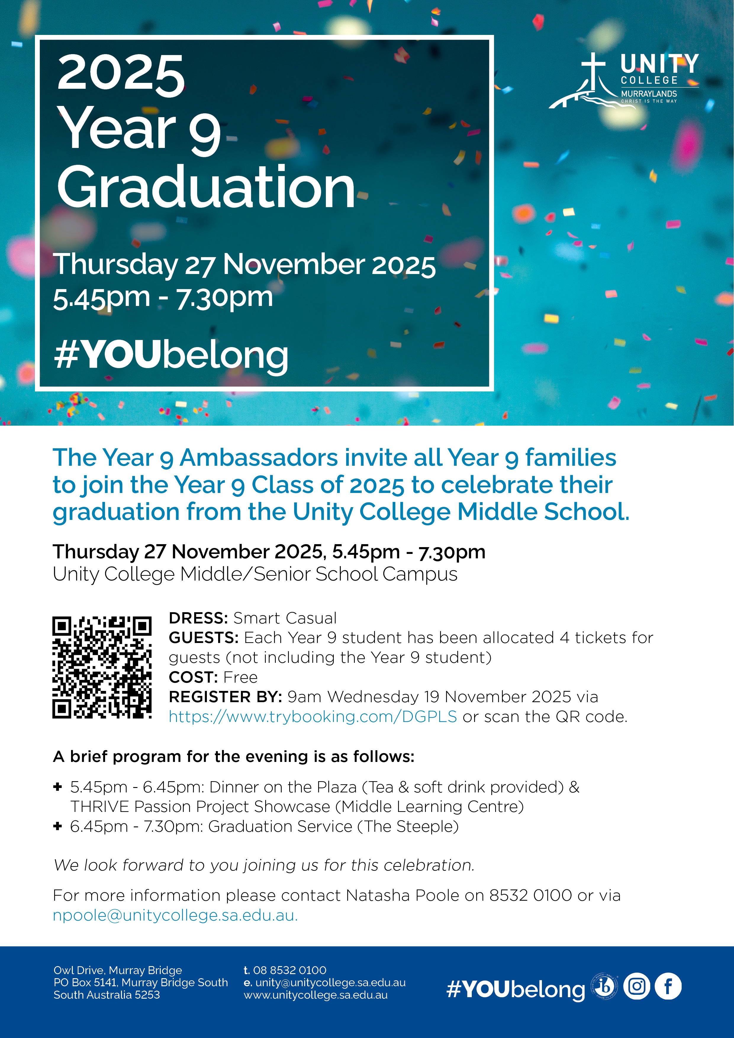**Limit of 4 guests per Year 9 student (not including Year 9 student)**