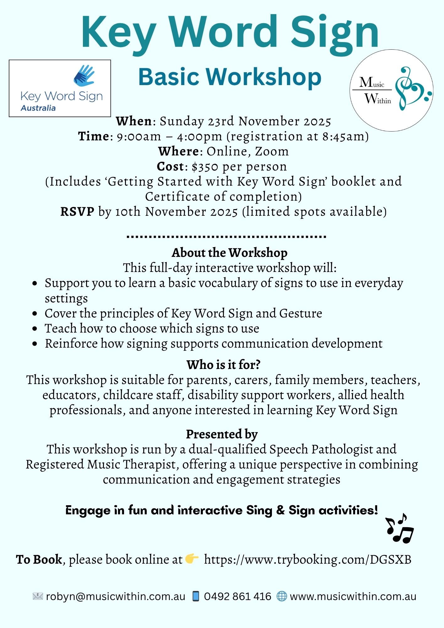 Transfer of Ticket: Tickets may be transferred to another person up to 7 days before the workshop date. Please notify the organiser of any changes.