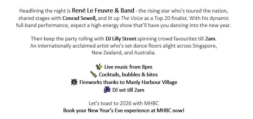 For further details - follow our socials & webpage for more. www.manlyharbourboatclub.com.au