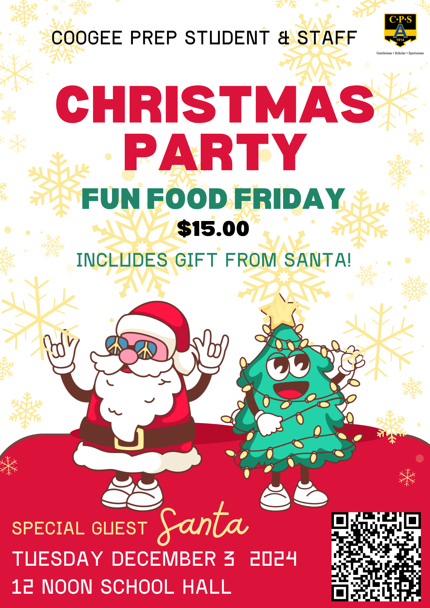 Chicken nuggets & chips, cupcakes, sweet treats and a drink and gift from Santa. Vegetarian, halal, gluten free options available.