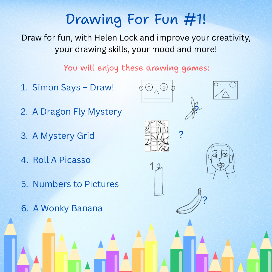 Come and have some drawing fun with Helen Lock! Helen will guide you through this workshop with fun activities designed to develop creativity, art skills and boost well-being in a social, supportive environment. You will enjoy six different drawing games, including, Simon Says - Draw!, A Mystery Grid and A Wonky Banana. If you are curious about these activities, come along and have fun.