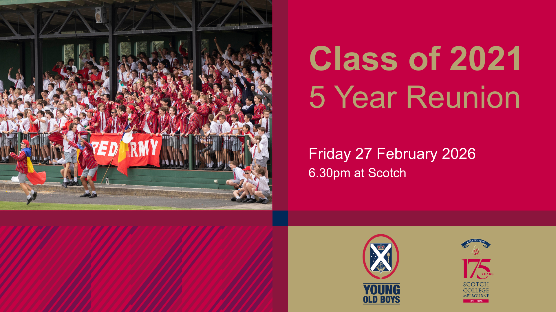 Date: Friday 27 February 2026 Time: 6.30pm - 9.30pm Venue: Scotch College Inclusions: Food and beverages will be served Cost: $55 per person Dress: Casual Please note, this reunion is for past students only RSVP: Bookings and payment can be made online by Friday 20 February 2026 Spread the word: Our database is very helpful but there are always a significant number of ‘lost’ Old Collegians for whom we do not have contact details. Please encourage others to come along.