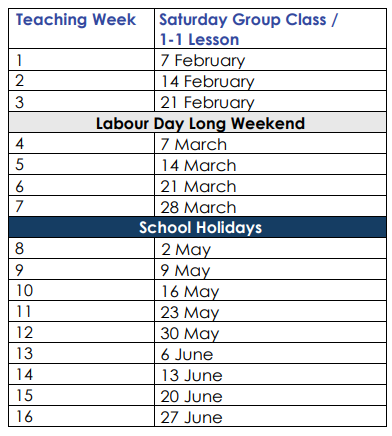 *For weekday 1-1 lessons, please refer to your welcome email.