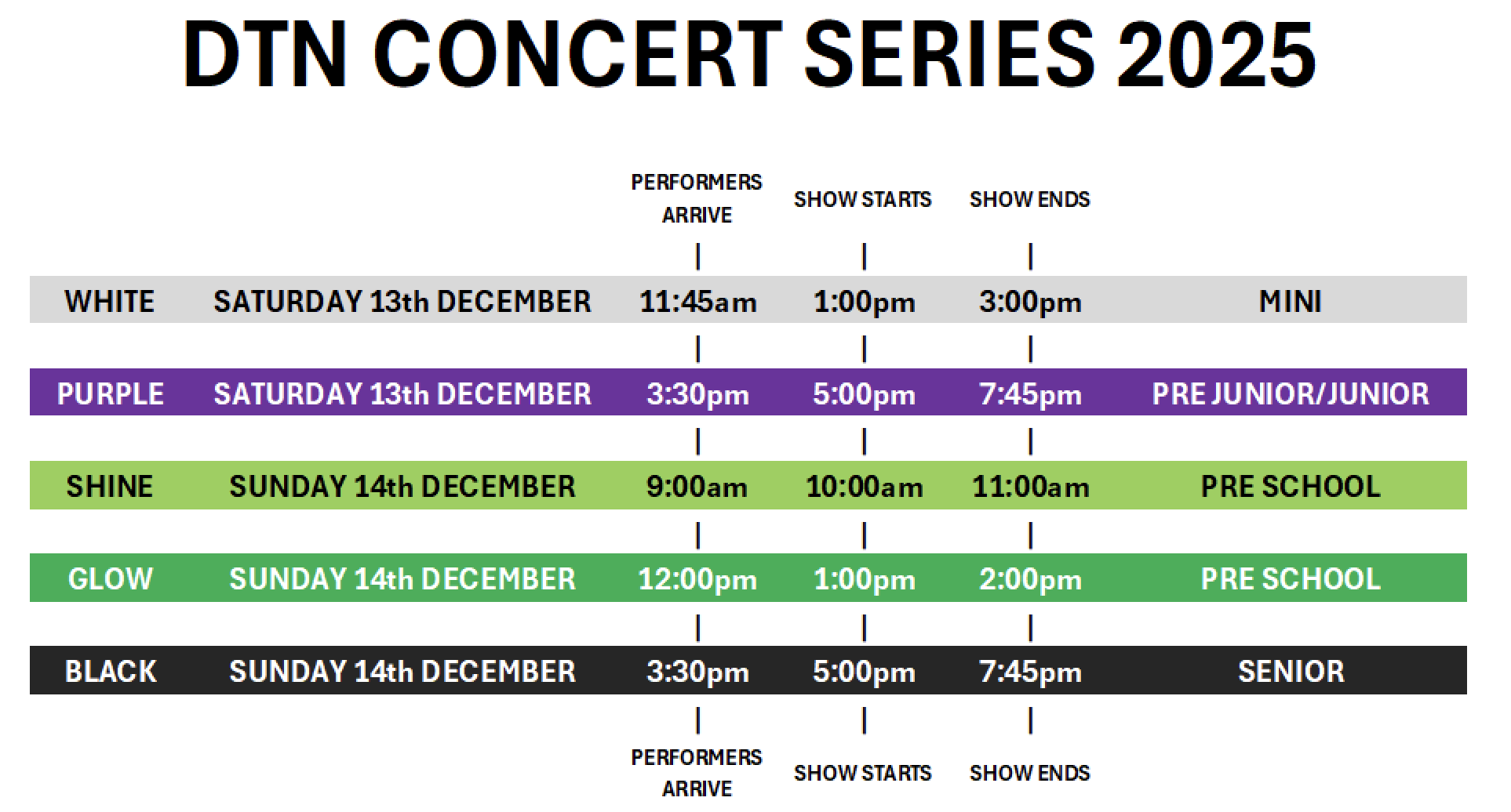 The only exception to this is infant children who cannot walk and will be held in arms, for the duration of the show.