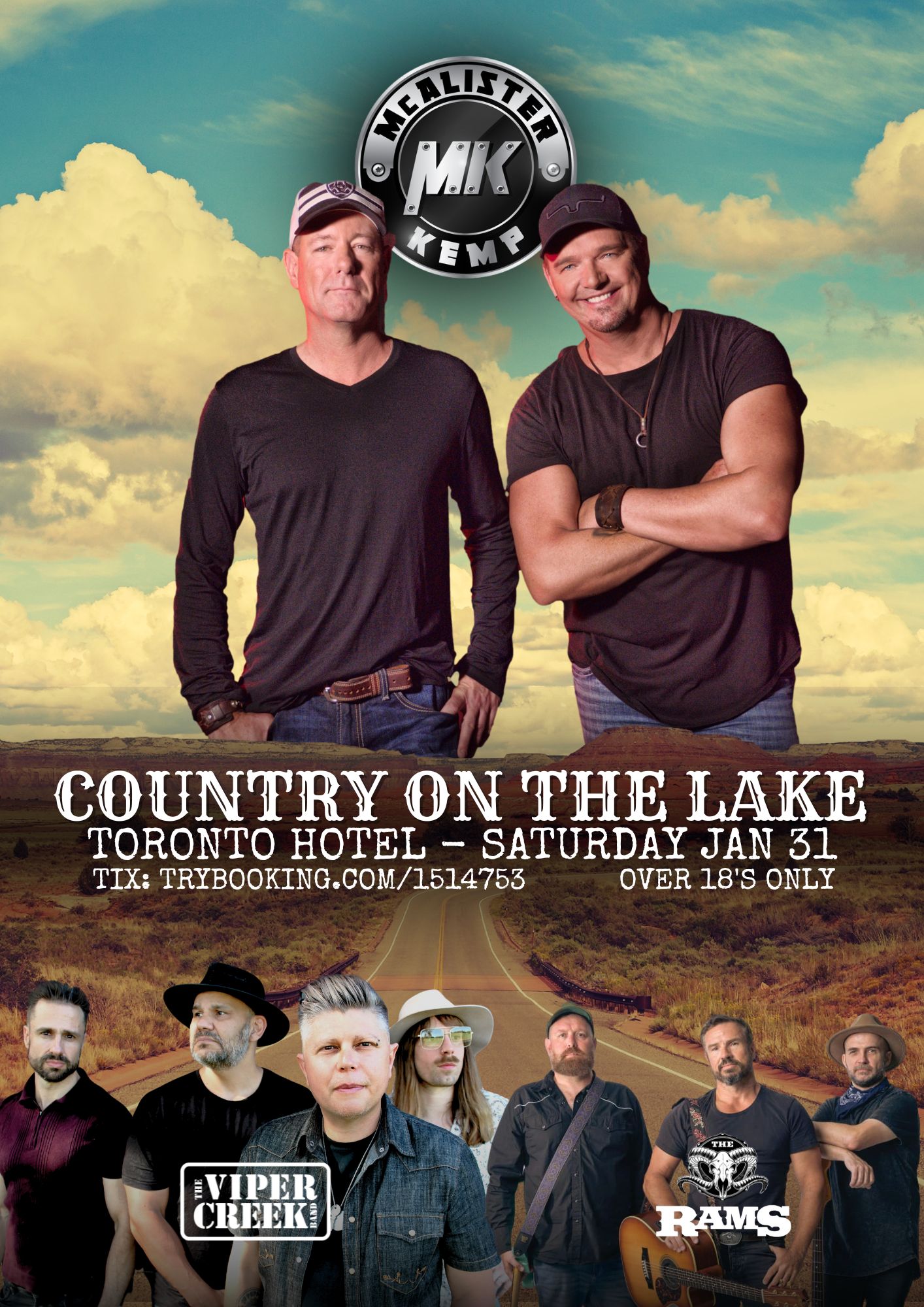 Australian country-rock superstars McAlister Kemp are joined by The Viper Creek Band and The Rams for one huge night Live On The Lake!