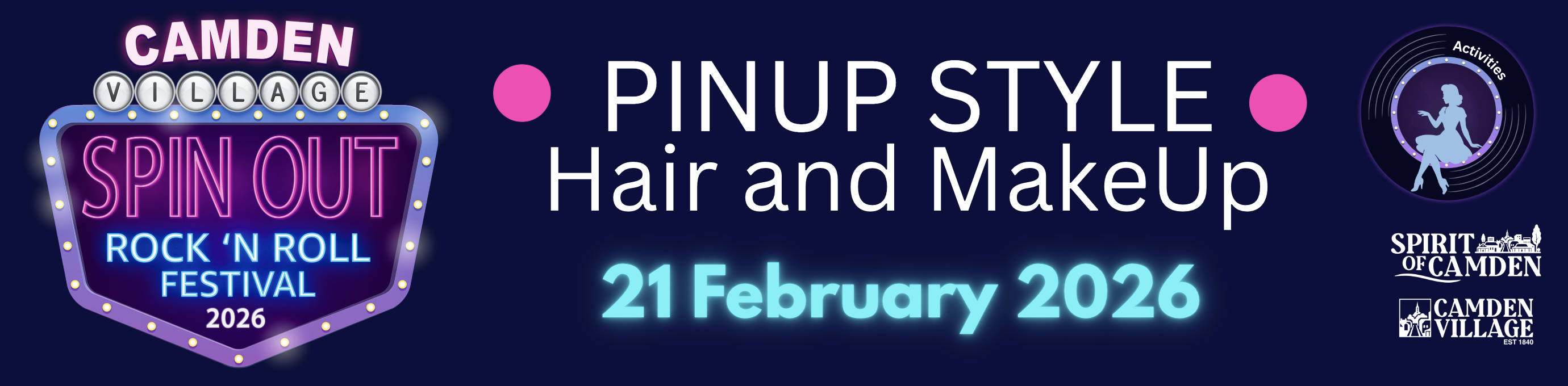 Hair and Make Salon - Get ready for your SPINOUT 2026 Hair and Make up StylingMichelle Newport from Michelle's Hairloom, local hairdresser with over 30 years experience and member of Spirit of Camden brings this pop up salon to life for SPINOUT 2026.