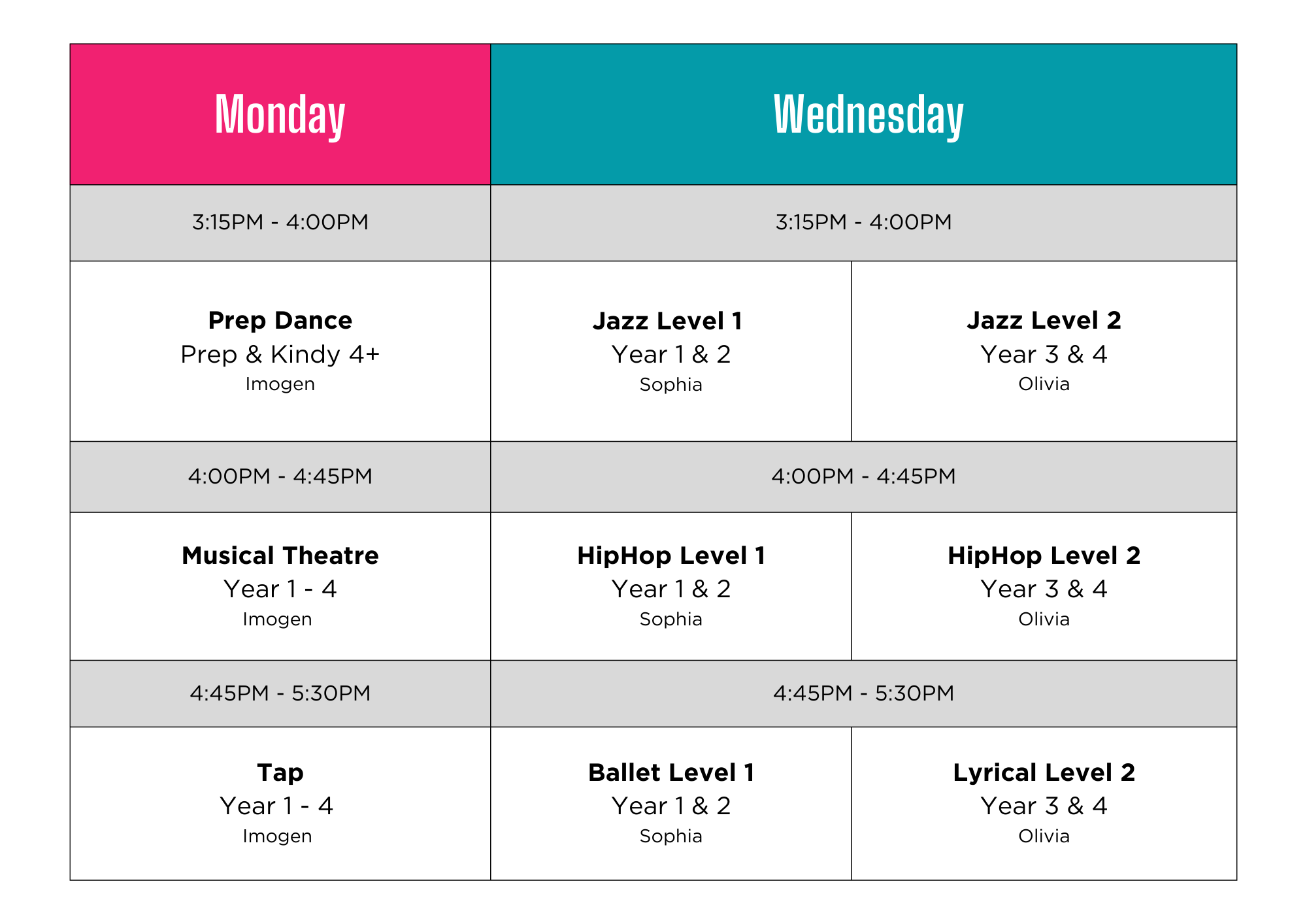 The levy is pro-rata’d over the first three terms' invoices and is a contribution towards the annual Dance Concert and Costuming.