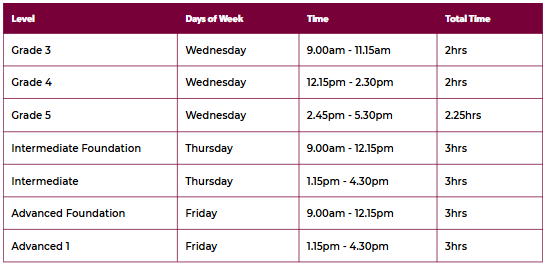 Classes are taken by Royal Academy of Dance examiners and tutors and focus on coaching the syllabus, including dances and variations. Students should have a good knowledge of the syllabus and their chosen dance/variations prior to attending. Students should supply their own props for dances (where required).