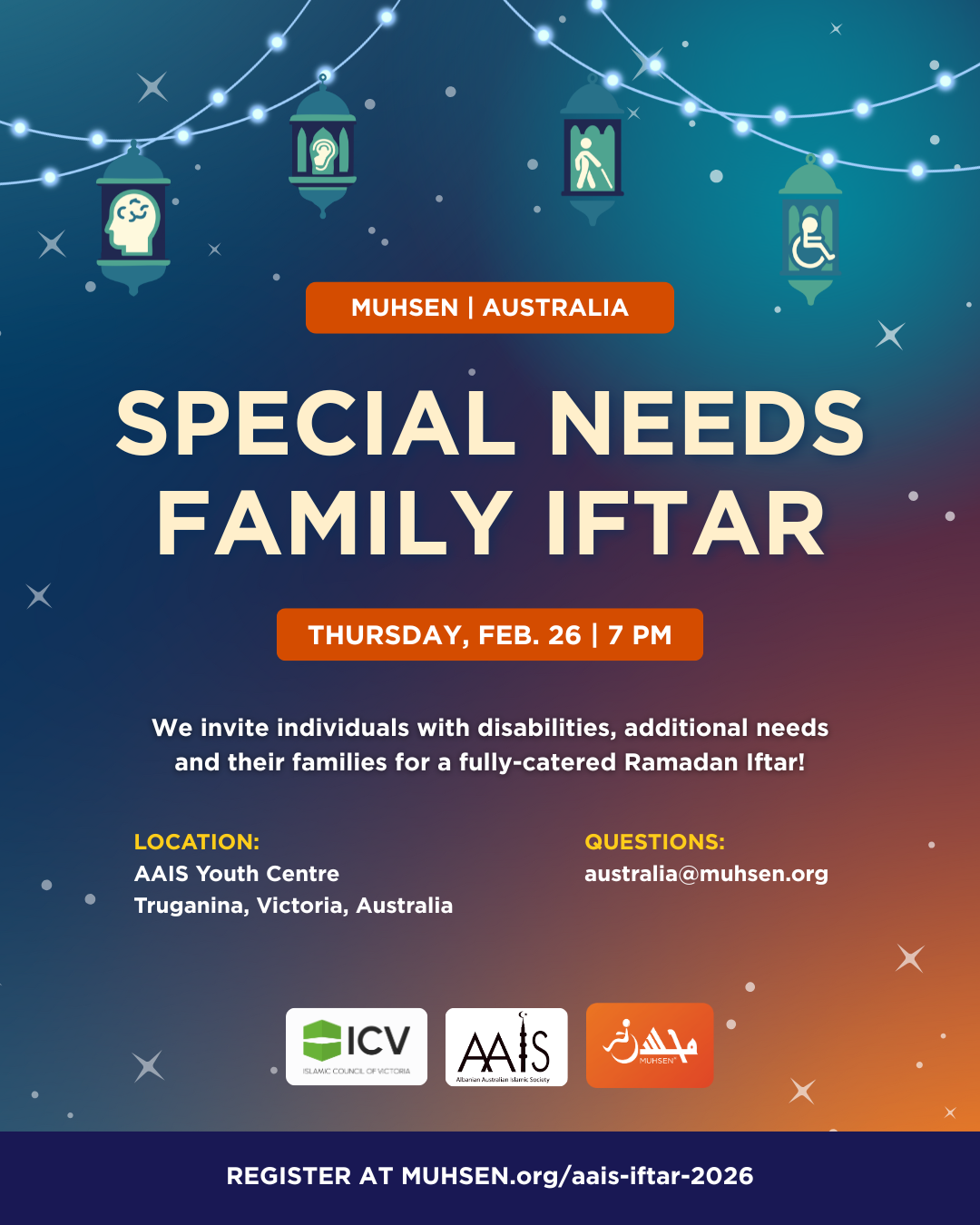 MUHSEN AUSTRALIA X ICV X AAISWe invite individuals with disabilities, additional needs and their families for a fully-catered Ramadan Iftar!