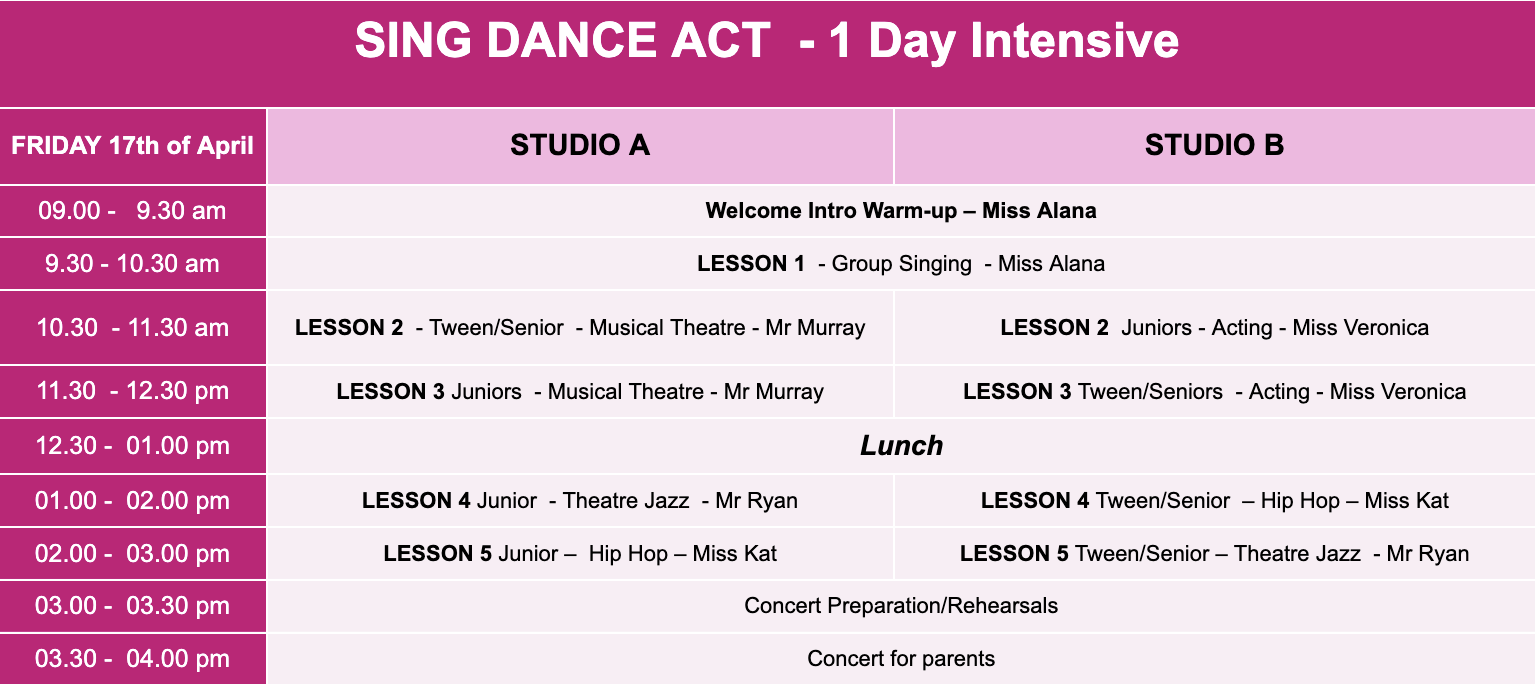 A small performance for parents & friends to enjoy will be shown in the afternoon.