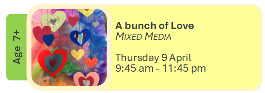 Art can be messy, please don't wear your best clothes. All materials supplied.