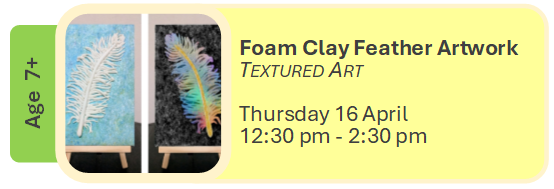 In this playful and expressive class, kids will use foam clay to create a textured feather artwork.