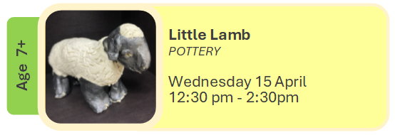 A fun class, lead by out tuor Lynne, where students can explore the magic of pottery by creating their own ceramic pet lamb!