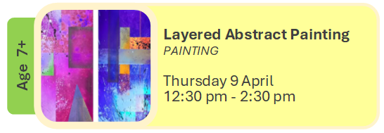 Get creative in this hands-on workshop -- Join our tutor Claire, and let kids create their own Layered Abstract Painting