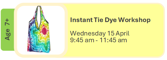In this Instant Tie Dyed workshop, you will create a tote bag, ready to take home at the end of the session.