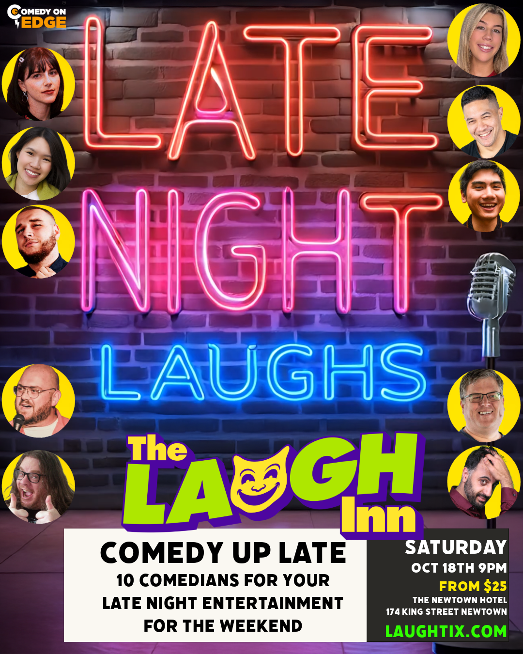 The Laugh Inn Comedy Club is host to amazing comedy showcases of professional comedians from all around the world. With diverse selections of different comedians, comedy styles, and shows making The Laugh Inn a perfect night out for friends, groups, couples and everyone else.