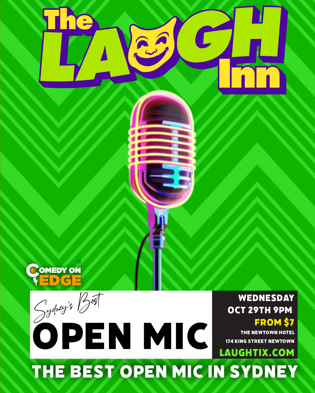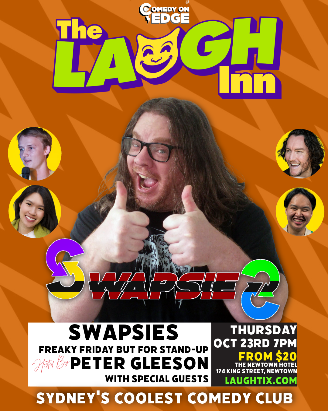 At the iconic Newtown Hotel, renowned for its great atmosphere and hilarious night of fun live entertainment, spoil you for choice with their range of drinks and an enticing menu of delicious meals and snacks. Come and have dinner at the venue before or after the show.