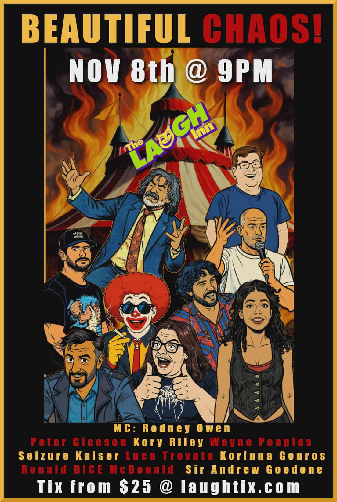 Friday & Saturday $25 when bought online ($5 more at the door) Group ticket also available.