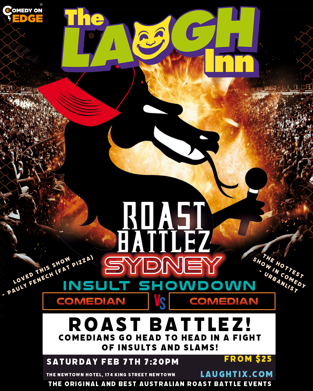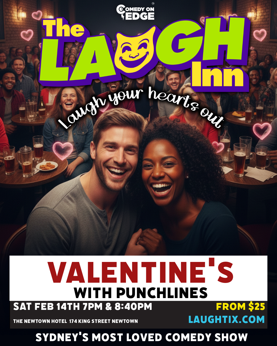 At the iconic Newtown Hotel, renowned for its great atmosphere and hilarious night of fun live entertainment, spoil you for choice with their range of drinks and an enticing menu of delicious meals and snacks. Come and have dinner at the venue before or after the show.