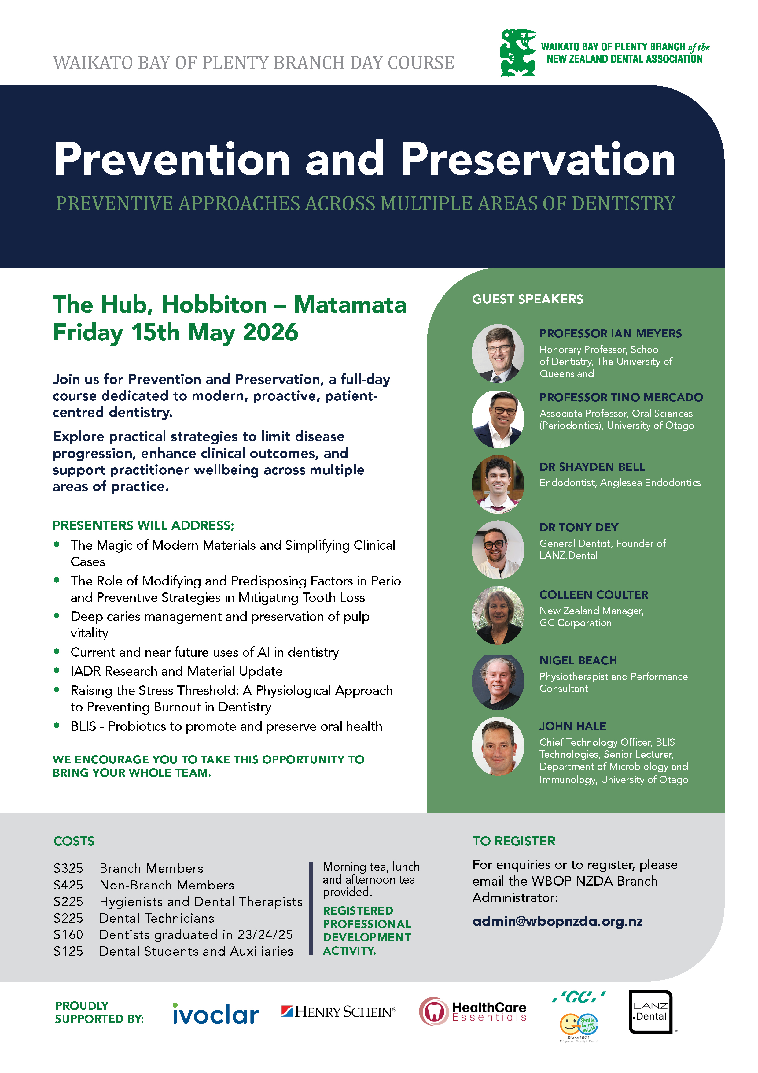 Join us for Prevention and Preservation - preventive approaches across multiple areas of dentistry.This is a full-day course for all dental professionals, featuring outstanding speakers focused on modern, proactive, and patient-centred dentistry.