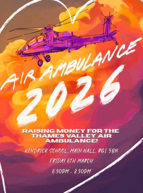 This entirely student-led concert by Kendrick and Reading School will raise funds for Thames Valley Air Ambulance (TVAA). Featuring a diverse range of ensembles and soloists performing popular hits from Runaway Baby (Bruno Mars) to classical masterpieces like O Nata Lux (Tallis), the music promises to impress and entertain. We hope to see many of you there to raise money for such an important, lifesaving cause!