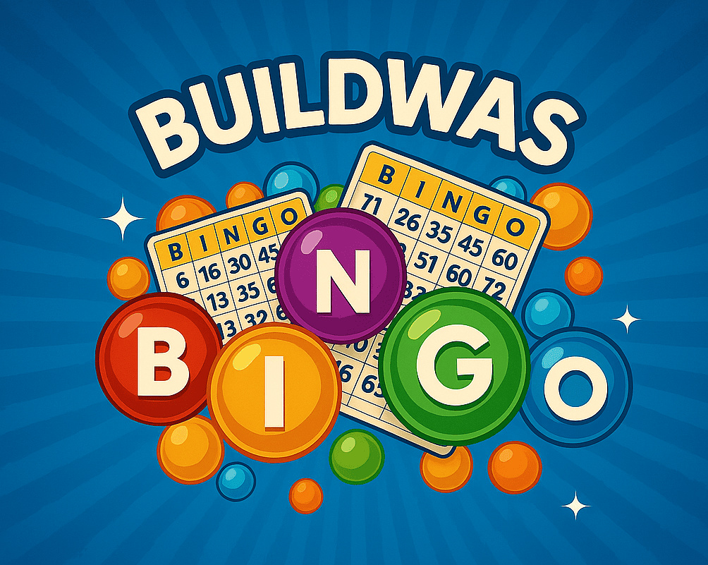 Maximum 60 spaces. Register online in advance at www.tinyurl.com/buildwasbingo