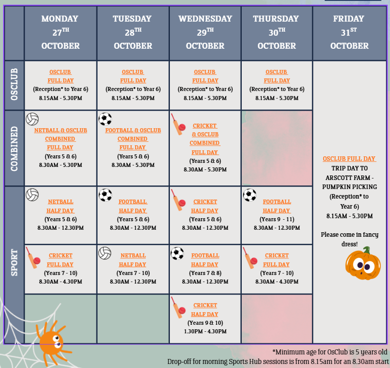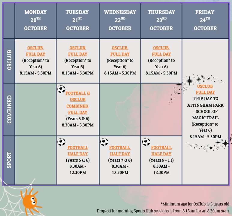 OSCLUB ACTIVITY PROGRAMME FOR OCTOBER HALF TERM