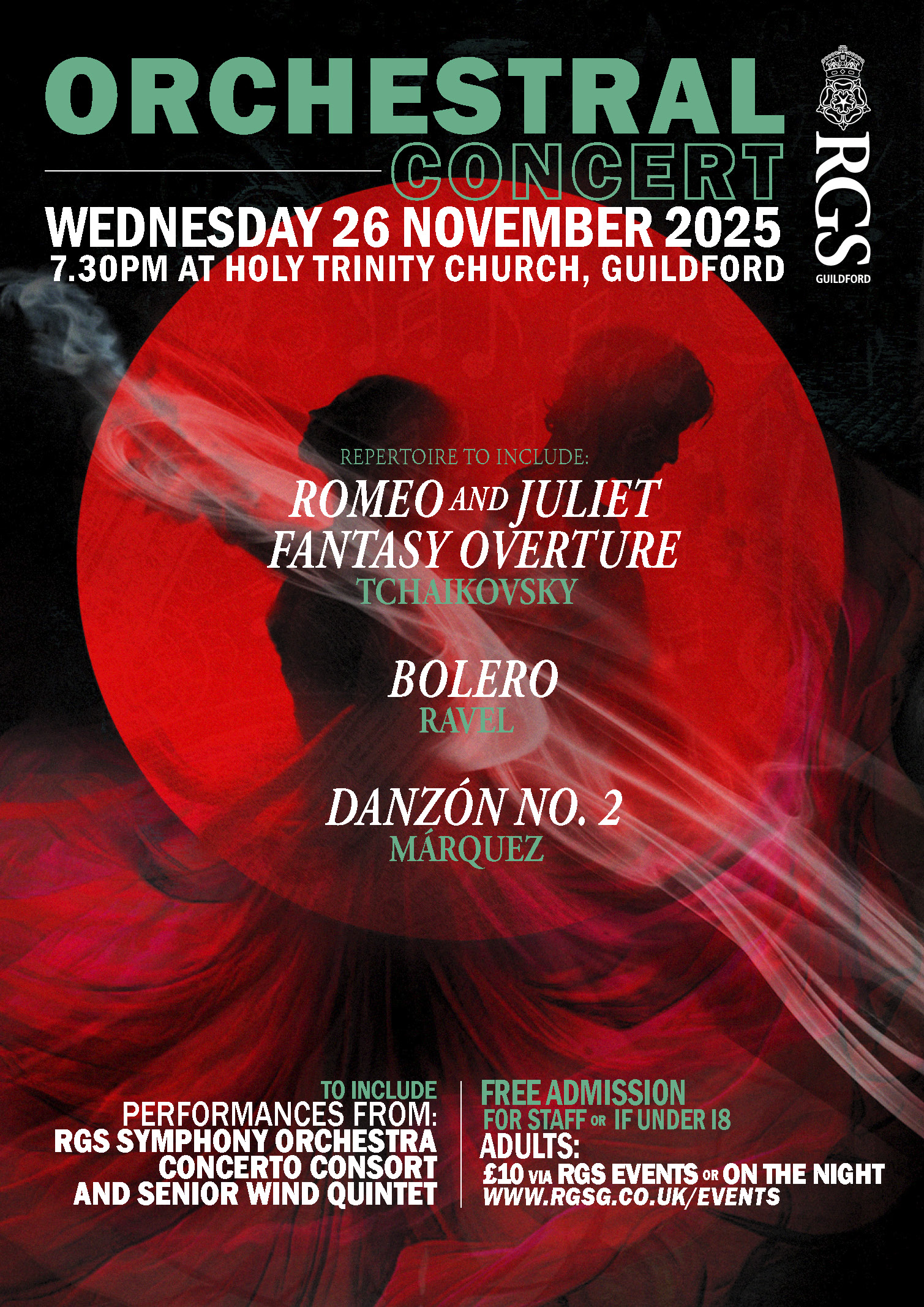 You are warmly invited to this term’s orchestral concert, taking place in Holy Trinity Church on Wednesday 26 November at 7.30pm.Join us for an unforgettable evening of orchestral music, featuring Tchaikovsky’s passionate Romeo and Juliet Fantasy Overture, Ravel’s hypnotic Bolero, and Márquez’s exhilarating Danzón No. 2. This promises to be a performance not to be missed and we look forward to seeing you there.