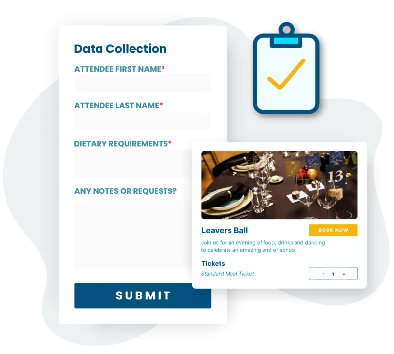 Yes. Custom Forms let you collect dinner choices, dietary requirements, accessibility needs, plus-one names, or anything else — all at the time of booking. No sending round loads of forms afterwards.