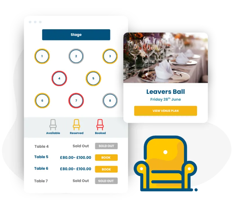 Yes. Build a bespoke table layout that match your venue - staff and students can choose their own seats when they book, so you're not sorting the table plan at the last minute.