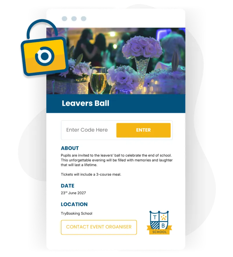 No code, no booking. Set up a unique password for all, or even individual ones - with TryBooking, there's no need to worry about gatecrashers.